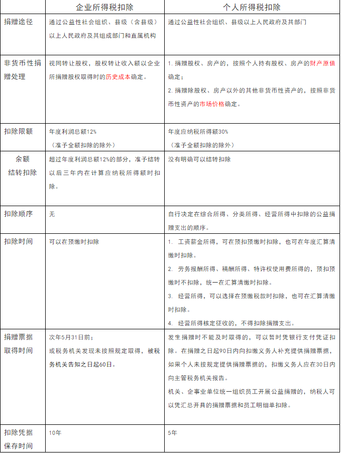 但是同样是公益救济性捐赠,在企业所得税和个人所得税的处理上有哪些异同,看小编哥哥的归纳吧: